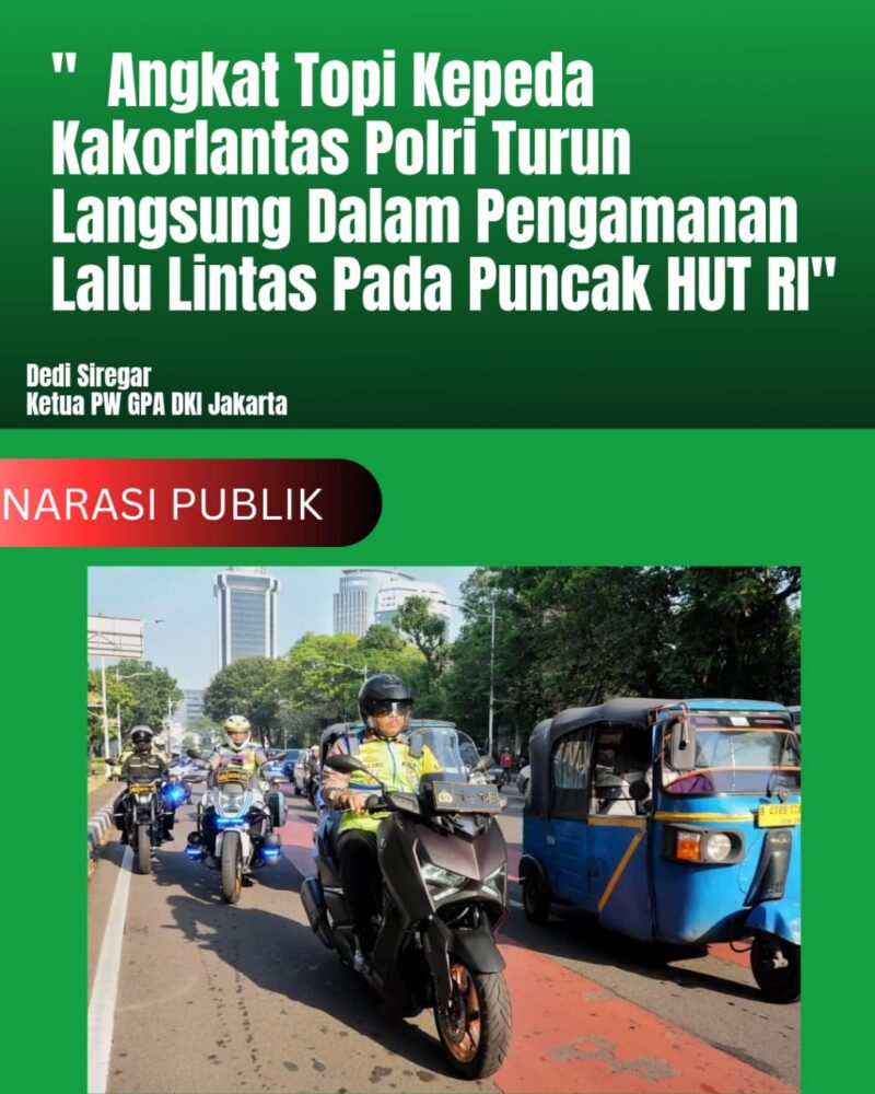 Jakarta, 18/08/2025 | Pimpinan Wilayah Gerakan Pemuda Al Washliyah Provinsi DKI Jakarta ( PW GPA DKI JAKARTA ) melalui ketua Dedi Siregar Menyampiakan pujian yang tinggi kepada Kepala Korps Lalu Lintas Korps Lalu Lintas ( Kakorlantas ) Polri Irjen Pol Agus Suryonugroho dan jajaran Korps Lalu Lintas ( Korlantas ) Polri, dalam mengatur lalu lintas dan kelancaran dan keamanan peringatan Hari Ulang Tahun ke-80 Republik Indonesia.