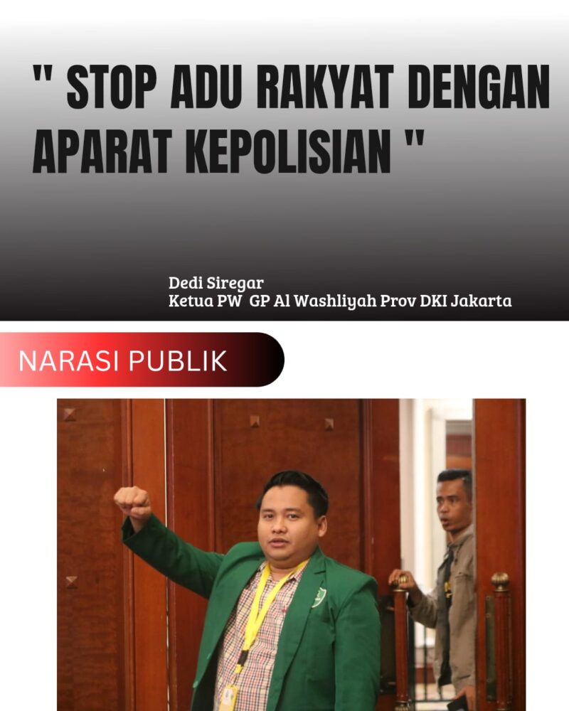 Jakarta, 29 Agustus 2025 | Seruan Damai dan Keadilan di Tengah Situasi Aksi Demo dari Pimpinan Wilayah Gerakan Pemuda Al Washliyah Provinsi DKI Jakarta melalui Ketua Dedi Siregar.