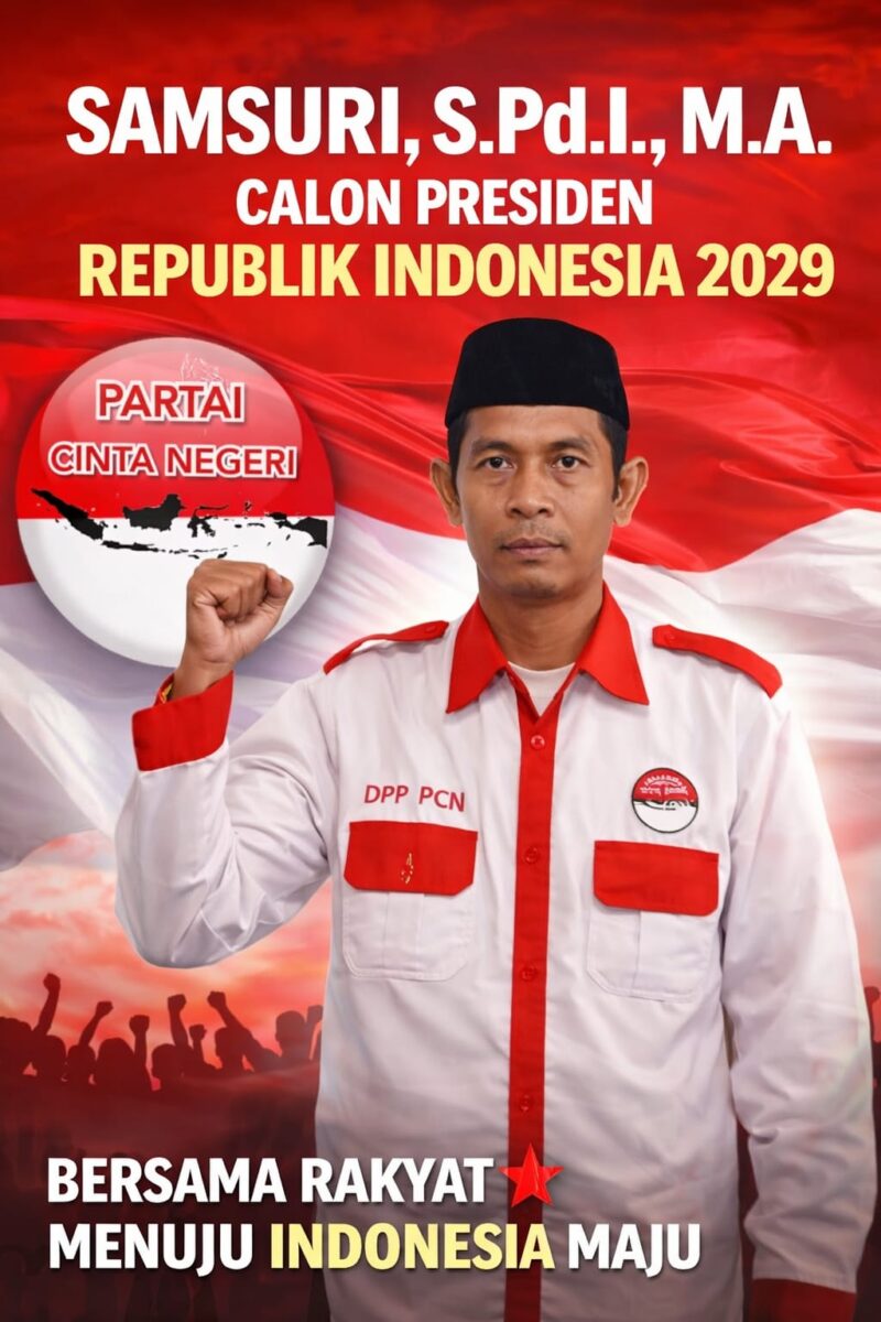DEKLARASI SAMSURI, S.Pd.I, M.A (KETUA UMUM PARTAI CINTA NEGERI) SEBAGAI CALON PRESIDEN REPUBLIK INDONESIA PERIODE 2029–2034.