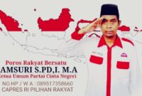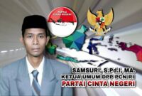 Jakarta — Pendiri sekaligus Ketua Umum Partai Cinta Negeri (Samsuri, S.Pd.I., M.A.) resmi dideklarasikan sebagai Calon Presiden Republik Indonesia untuk Pemilihan Presiden (Pilpres) 2029….